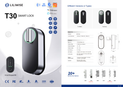 Η Liliwice T30 είναι μια προηγμένη έξυπνη ηλεκτρονική κλειδαριά που προσφέρει κορυφαία ασφάλεια και σύγχρονες δυνατότητες διαχείρισης πρόσβασης. Με κομψό μαύρο φινίρισμα και μοντέρνο σχεδιασμό, ενσωματώνει τεχνολογίες αιχμής όπως Bluetooth, Wi-Fi, φωνητικό έλεγχο και βιομετρική ταυτοποίηση, αποτελώντας ιδανική επιλογή για κατοικίες, AirBnB, επαγγελματικούς χώρους και έξυπνα σπίτια. Η Liliwice T30 ενσωματώνει τον τέλειο συνδυασμό τεχνολογίας, ασφάλειας και ευχρηστίας, προσφέροντάς σας έξυπνη πρόσβαση με άνεση και σιγουριά – είτε βρίσκεστε στον χώρο σας είτε μακριά.